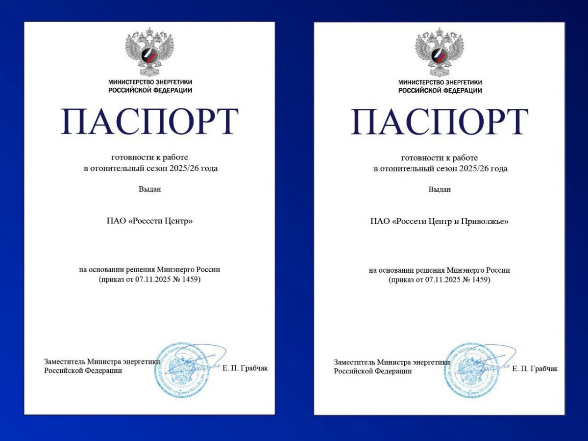 «Россети Центр» и «Россети Центр и Приволжье» получили Паспорта готовности к прохождению отопительного сезона