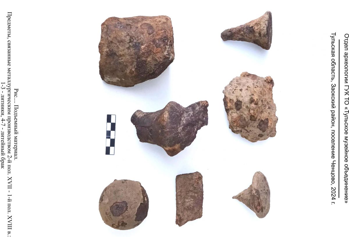 «Наши археологические артефакты пролили свет, в том числе, и на самую раннюю историю этого места. Судя по массовым находкам, главным образом по фрагментированной керамической посуде, мы установили, что русское население из более южных районов нашего государства, вероятно, с территории Подонья, пришло сюда во второй половине или самом конце XIV в., что было обусловлено нестабильной военно-политической обстановкой в южных землях. Что же касается письменных источников, то наиболее ранние из сохранившихся писцовых книг упоминают этот населенный пункт лишь в конце XVI в. В середине XVII в. на реке Скниге голландским предпринимателем П.Г. Марселисом ставятся 4 завода – Ведменский, Саломыковский, Ченцовский и Ёлкинский, которые вошли в историю под общим названием каширских или соломенских заводов. Из них самым крупным был Ченцовский, и именно вблизи него на левом берегу реки находилась усадьба самого заводчика, а также дворы вольнонаемных иностранных мастеров. На усадьбе П.Г. Марселиса, судя по сохранившемуся описанию 1670-х гг., располагалось множество различных деревянных строений, в том числе 3-этажный терем со светлицами и изразцовыми печами. Несколько фрагментов муравленых изразцов от этих самых печей нам посчастливилось найти. Были выявлены и обломки керамических голландских курительных трубок, которыми пользовались европейские специалисты. В Ченцове неоднократно бывал царь Петр I, который по пути из Москвы в Воронеж останавливался здесь у своего дяди Льва Кирилловича Нарышкина. Естественно, государя интересовало производство огнестрельного и холодного оружия, окончательная отделка которого перед отправкой в казну также производилась на ченцовском заводе», - рассказал Сергей Зацаринный, заведующий отделом археологии Тульского музейного объединения.
