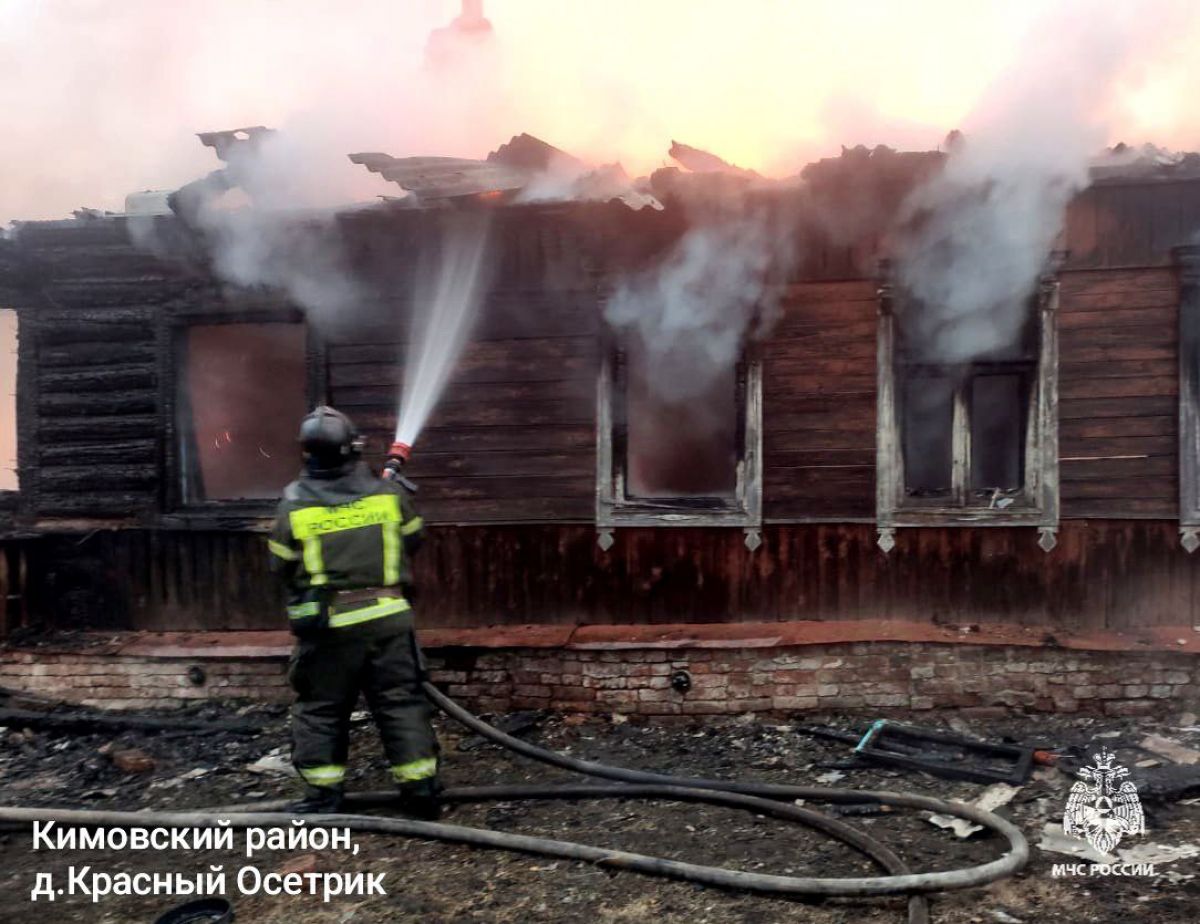 В деревне Красный Осетрик Кимовского района огонь уничтожил частный жилой дом. Строение выгорело внутри, обрушилась кровля, сгорела пристройка. Никто не пострадал.