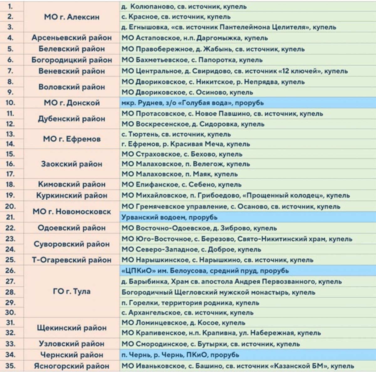 В тульском регионе будет официально открыто 35 мест для купаний – 31 купель и 4 иордани на открытой воде – по опыту 2020 года.