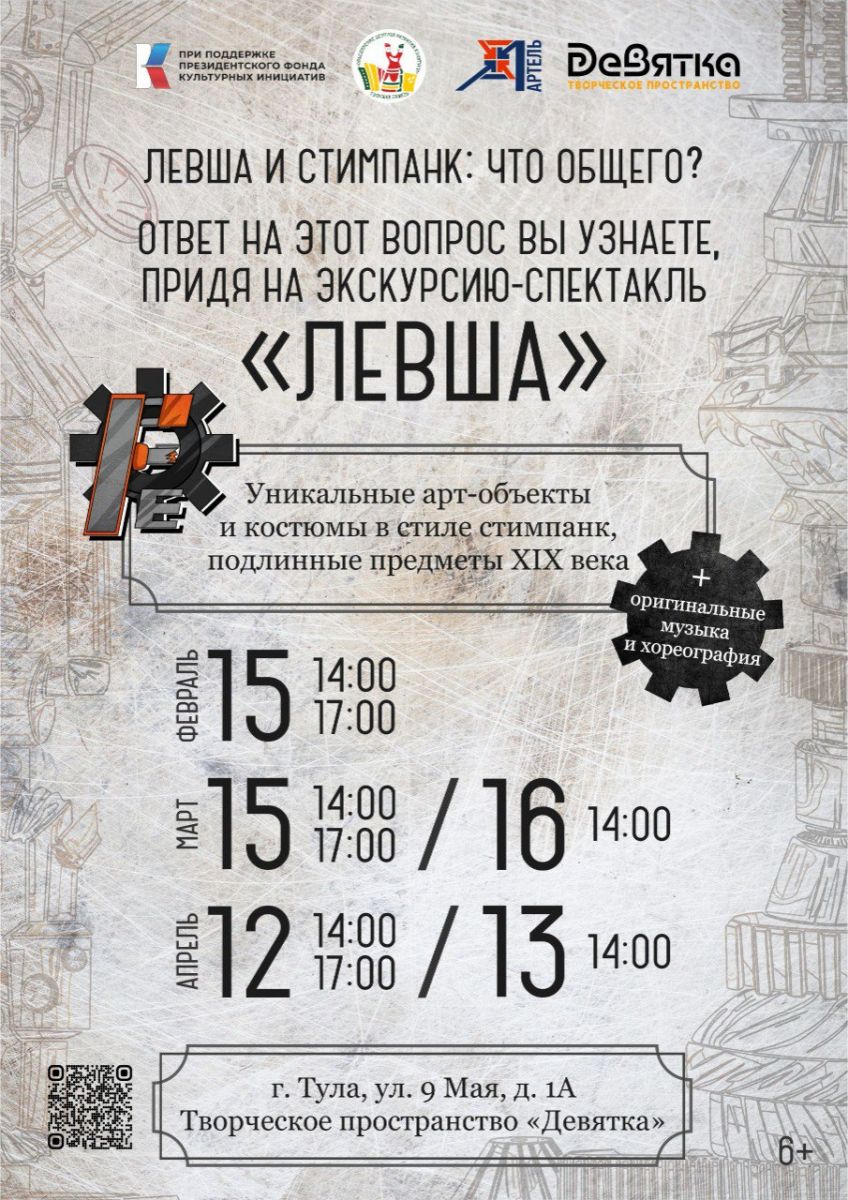 15 февраля в творческом пространстве «Девятка» состоится премьер экскурсия-спектакля «Левша», которую подготовили для III фестиваля стимпанк-культуры «Ferrum».