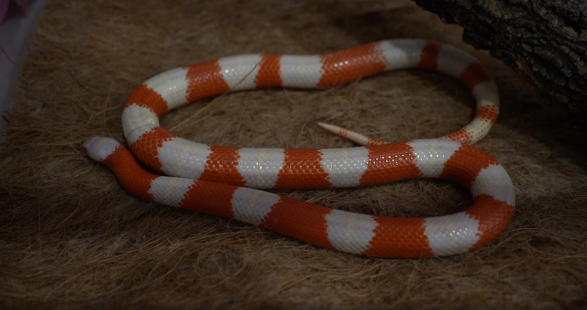 Сейчас Рифу около 2,5 лет, в семье Натальи он живет уже год. За это время он вырос до 70 см – не самый большой размер для молочной змеи Нельсона. Как утверждает хозяйка Рифа, молочная змея - наиболее простая в содержании и подходит новичкам. Главное – обустроить просторный проветриваемый террариум, обеспечить подогрев и комнатную температуру, сделать укрытия, где питомец может спрятаться. Пожалуй, стоит упомянуть еще и о кокосовом коврике, который впитывает запах и служит дополнительным укрытием для змейчика. С ним можно даже не общаться целую неделю, он совершенно не обидится.