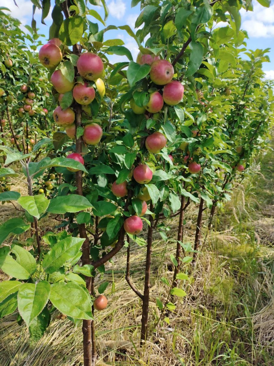 Центральное место в питомнике занимают колоновидные яблони. Их плоды обладают замечательными вкусовыми качествами, высокой урожайностью и устойчивостью к парше. Кроме того, колоновидные яблони стройны как кипарисы. Их кроны не затеняют садовые участки и не нуждаются в частой обрезке. Это экономит время, силы и средства садоводов.