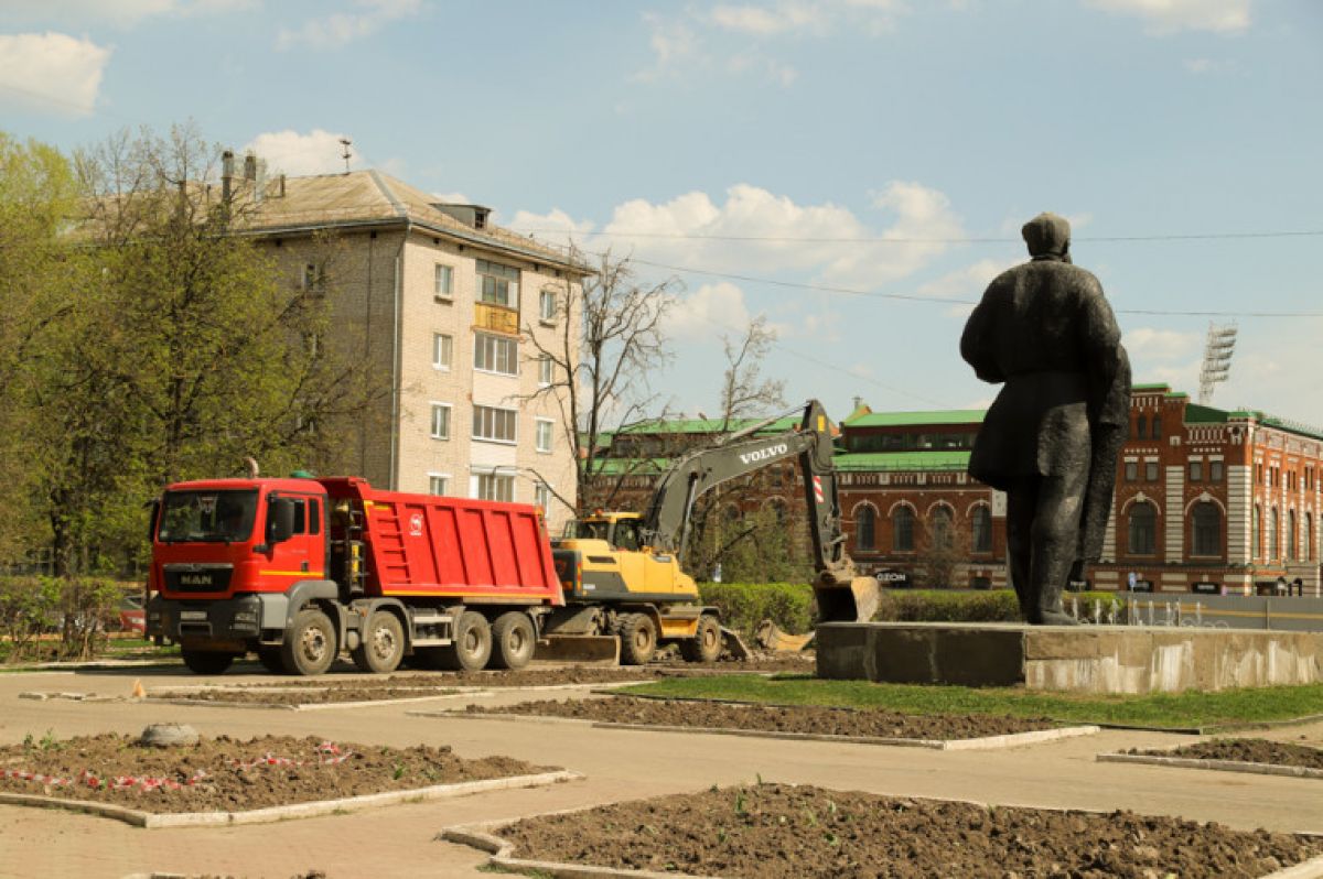 Здесь проведут комплексное благоустройство. Пока рабочие приступили к демонтажу плитки. Известно, что в пространстве будет заменена тротуарная плитка, установят спортивное и детское игровое оборудование, скамейки, урны, смонтируют уличное освещение, проведут озеленение территории, высадят деревья и кустарники. Также отремонтируют постамент памятника, на котором заменят гранитное покрытие.