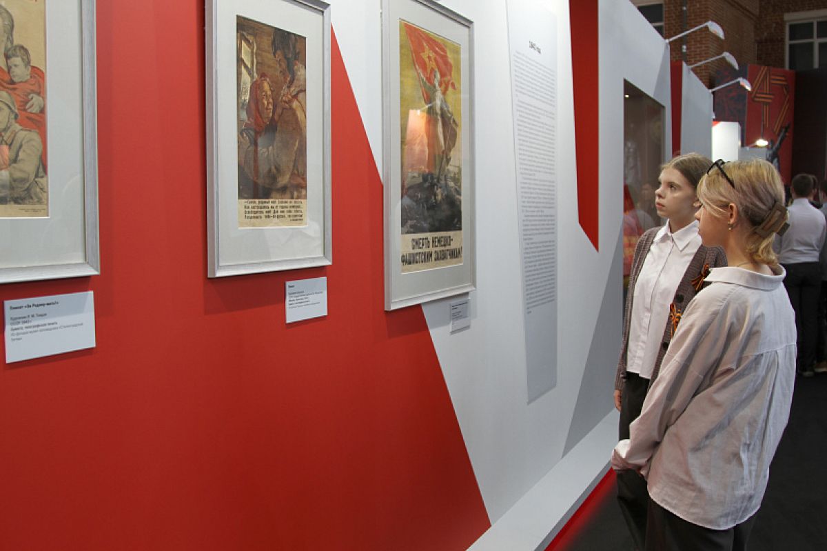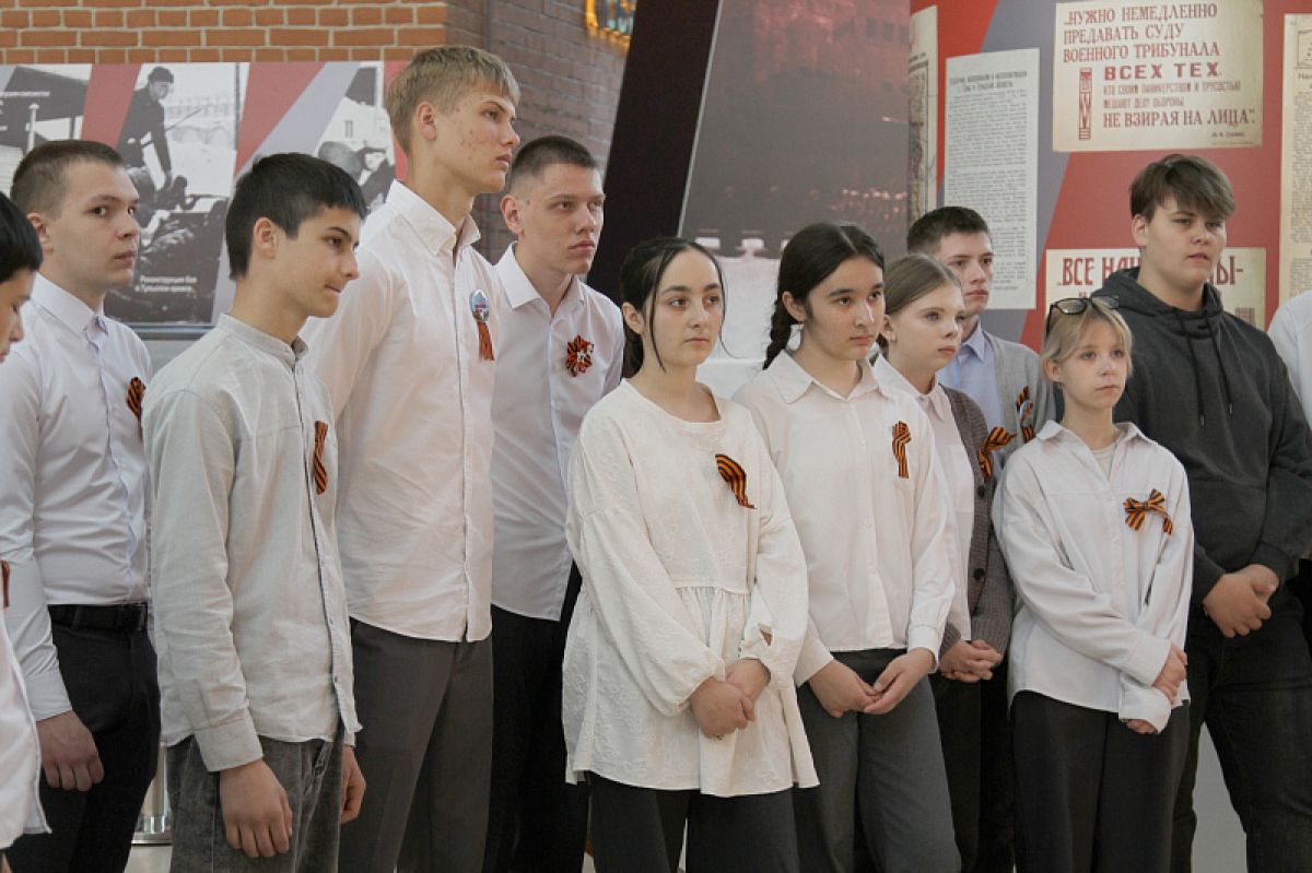 На выставке в атриуме Тульского кремля школьники познакомились с историей Великой Отечественной войны, событиями, произошедшими на фронтах и в тылу, подвигами солдат, героев труда, партизан.