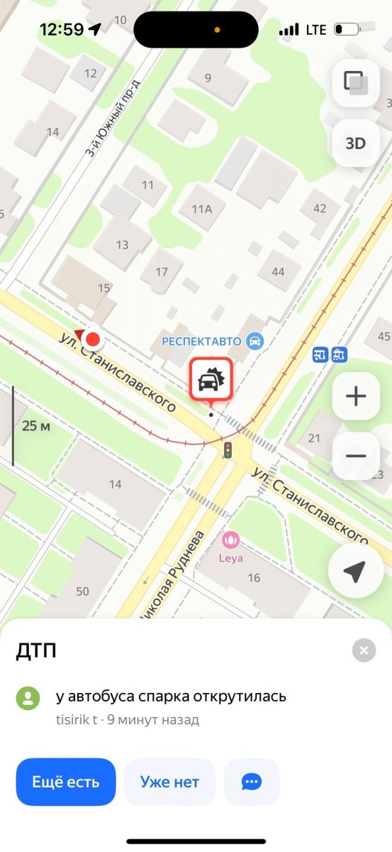 Кстати, сломанный автобус следует по измененному с сегодняшнего дня маршруту.