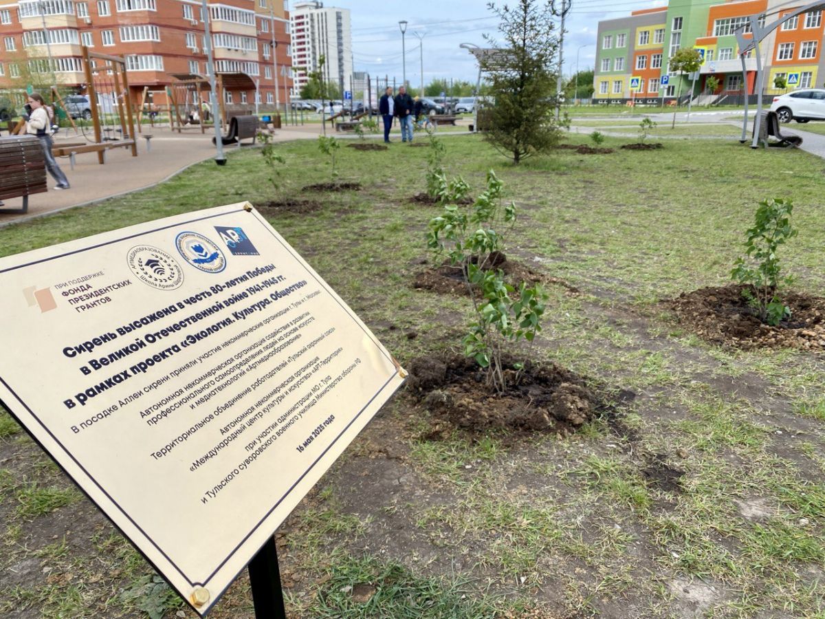 В рамках проекта «Экология. Культура. Общество», реализуемого АНО «Артмедиаобразование» при поддержке Фонда президентских грантов, в Юго-Восточном микрорайоне г. Тулы состоялась торжественная высадка Аллеи сирени. Известная телеведущая Арина Шарапова вместе с партнерами из некоммерческих организаций – Международным центром культуры и искусства «АРТ-Территория» и Тульским охранным союзом – высадили сирени. В мероприятии также приняли участие руководители администрации г. Тулы, воспитанники Тульского суворовского военного училища.