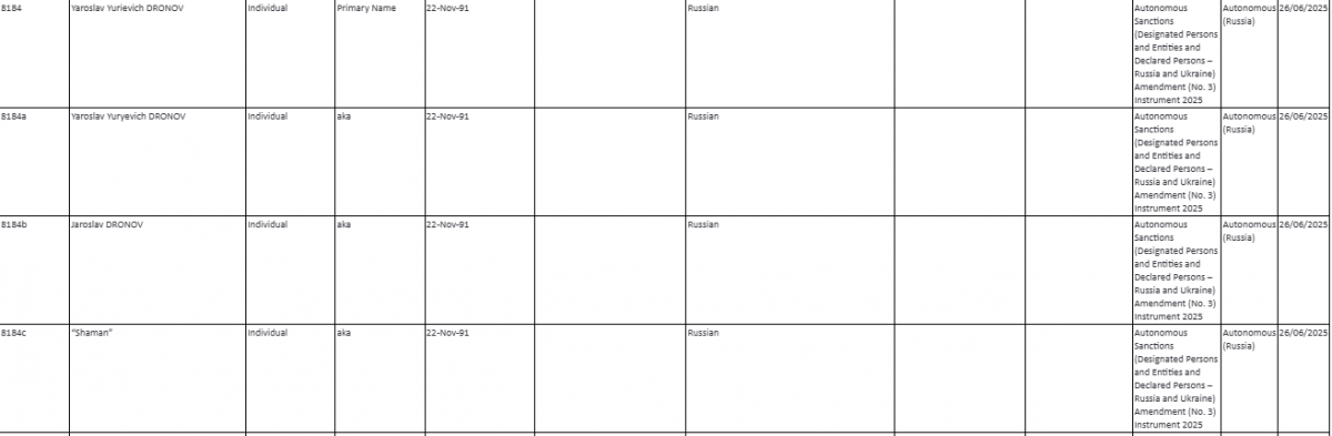 Ярослав Дронов, более известный как Shaman, был включен в санкционный список Австралии под номером 8184.