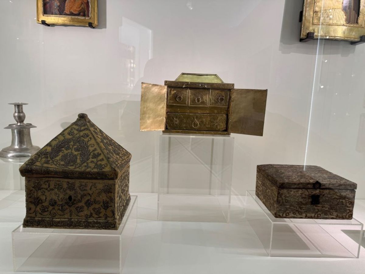 На выставке зрители могут увидеть иконостас Успенской церкви, иконостас семейных икон царя Алексея Михайловича, надгробный иконостас царицы Евдокии Федоровны Лопухиной. В последнем расположен образ Богоматери «Троеручица», который скорее всего был венчальным образом первой супруги Петра I и келейной иконой царицы.
