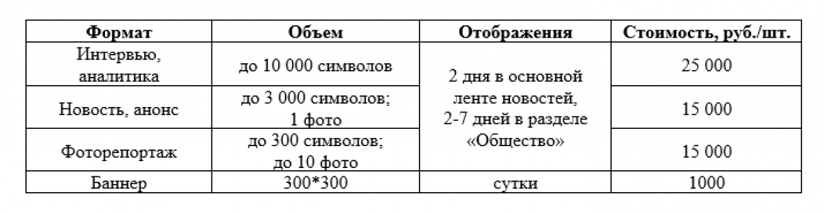 Печатная площадь, услуги по размещению агитационных материалов предоставляются по следующим расценкам:
