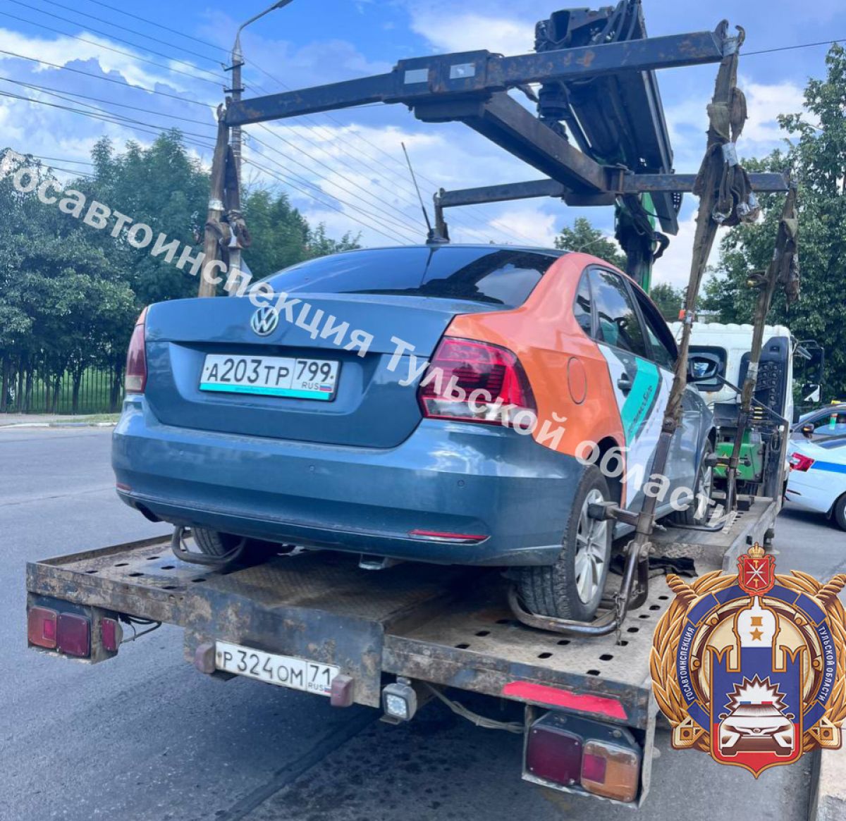 Накануне днем на Одоевском шоссе областного центра правоохранители обратили внимание на каршеринговый «Фольксваген Поло», водитель которого проехал на красный светофор на перекрестке и выехал на полосу встречного движения.