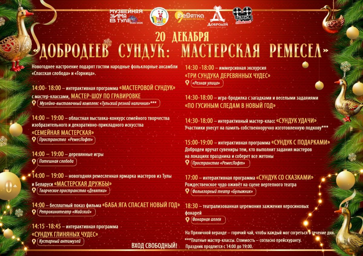 В субботу, 20 декабря, с 14:00 до 19:00 состоится праздник «Добродеев сундук: мастерская ремёсел».