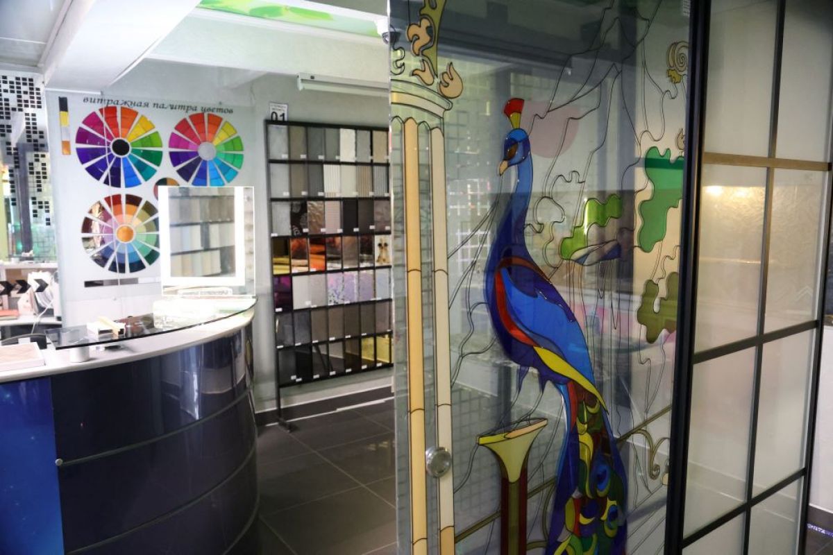 Здесь делают и другие эксклюзивные вещи: заливные витражи, проводят через стекло электрический ток, меняя его проницаемость. Всего не перечислить. Достаточно сказать, что почти каждую неделю сюда приходят по нескольку тысяч квадратных метров прозрачного материала, из которого потом получаются эксклюзивные изделия с пескоструйной обработкой и фотопечатью, триплексы и витражи.