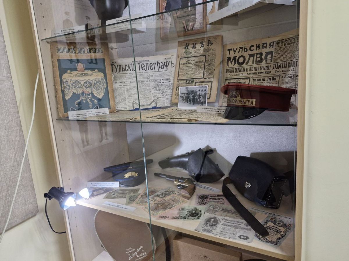 Предметы представлены из частных коллекций участников Историко-патриотического центра. В экспозицию вошли мундир солдата 72-го Тульского пехотного полка, костюм телеграфистки, форма одежды гимназистов, газетчиков, почтальонов и джентльменов.