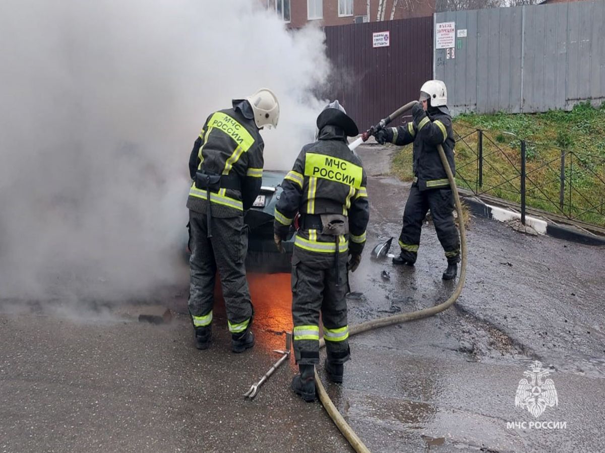 В Туле на улице Октябрьской возгорание легкового автомобиля ликвидировали 5 спасателей и 1 единица техники.
