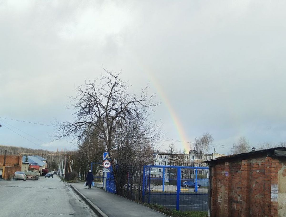 Жители тульской Иншинки успели запечатлеть редкое явление – зимнюю радугу. Природный многоколор раскинулся над поселком сегодня, 12 декабря.