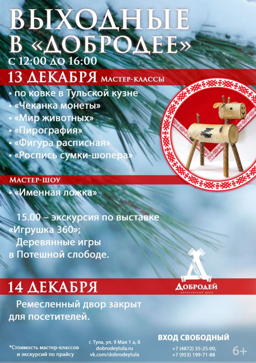 В воскресенье, 14 декабря, ремесленный двор закрыт для посетителей.