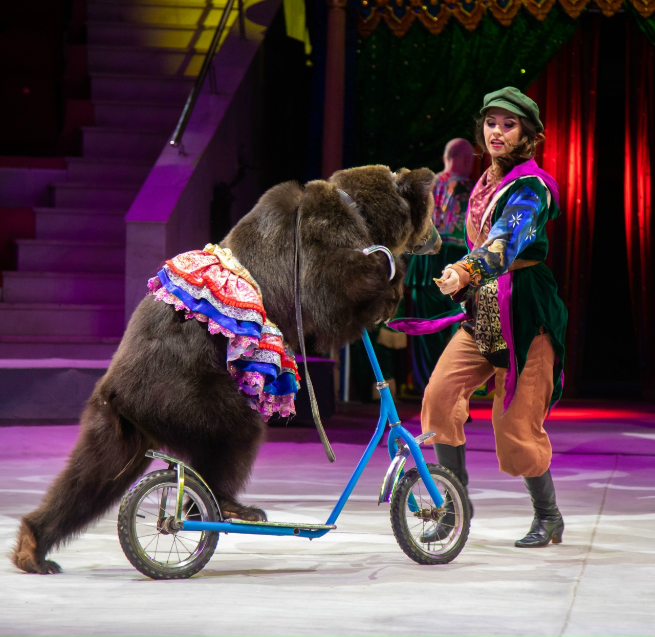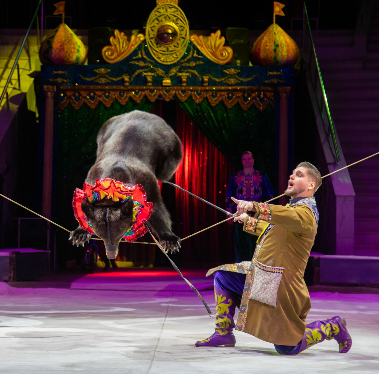 Один из самых любимых и узнаваемых героев русской сказки – косолапые мишки. Но глядя на то, как выступают медведи на манеже, как легко ходят на передних лапах и даже балансируют на шесте, язык не поворачивается обвинить их в неуклюжести! Всё это – годы кропотливой работы дрессировщика, режиссера-постановщика программы «Жар-птица» Михаила Клыкова. Он дрессировщик в шестом поколении, его династия ведет отсчет с 1836 года.