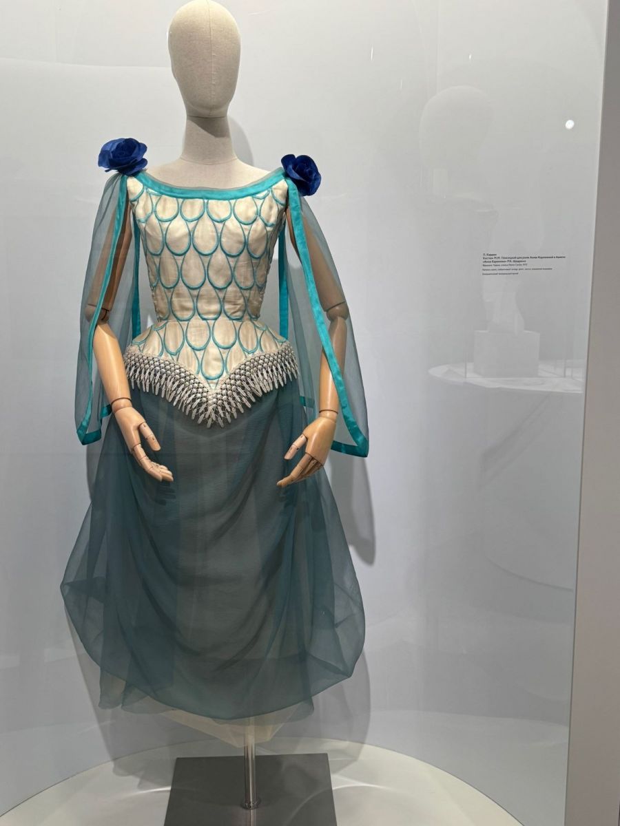 И здесь нельзя не завлечь зрителей, сказав, что на выставке представлены подлинные сценические костюмы, созданные Симоном Вирсаладзе для балетов «Спящая красавица» и «Жар-птица», новаторский костюм Леды из балета Мориса Бежара, а также серия работ Пьера Кардена.