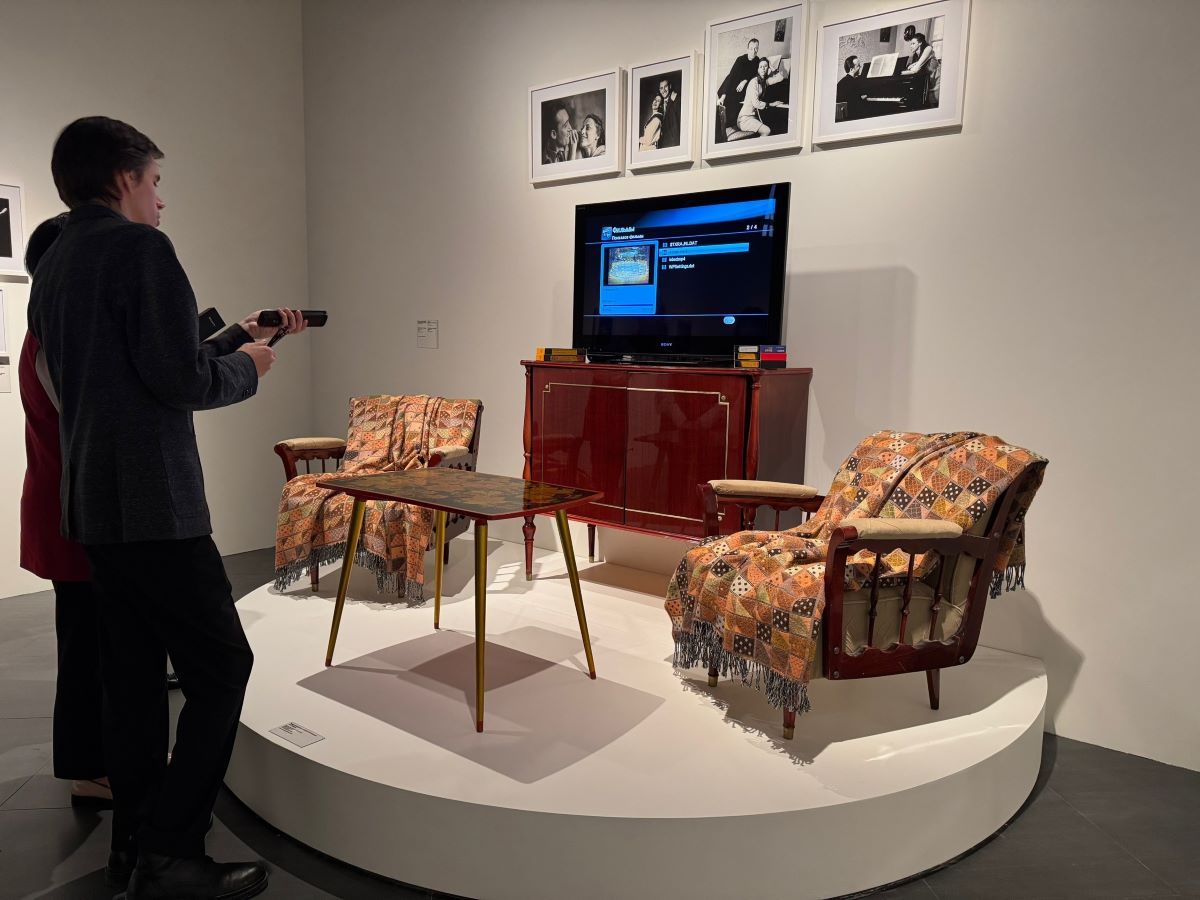 «Для нас очень важно было отразить в разделе тему семьи с Родионом Константиновичем. Специально для этого из квартиры на Тверской в Москве мы привезли их личный гарнитур, который представлен на выставке. Это кресла, журнальный столик, на которых они, когда у них была возможность, позволяло время, смотрели телевизор», - отметила генеральный директор Бахрушинского театрального музея Кристина Трубинова.