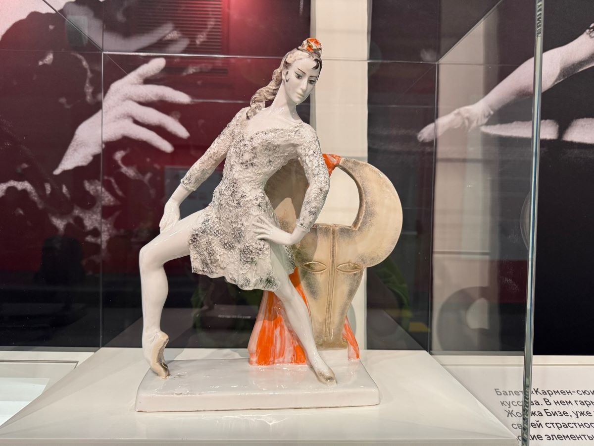 Один из разделов выставки посвящен творчеству балерины в Большом театре, которому она прослужила почти 50 лет, получила мировую славу и всеобщее признание. В нем презентованы два самых легендарных образа балерины – Кармен и Лебедя.