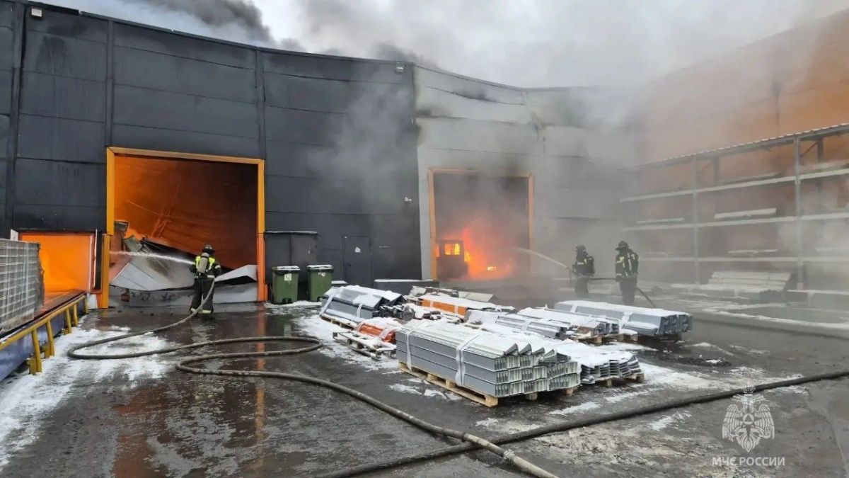 По предварительным данным, огонь распространился на площади 2 тысяч квадратных метров. Из горящего здания цеха по производству сэндвич-панелей эвакуировали 12 человек. Представители регионального Главного управления МЧС России наращивают силы и средства.
