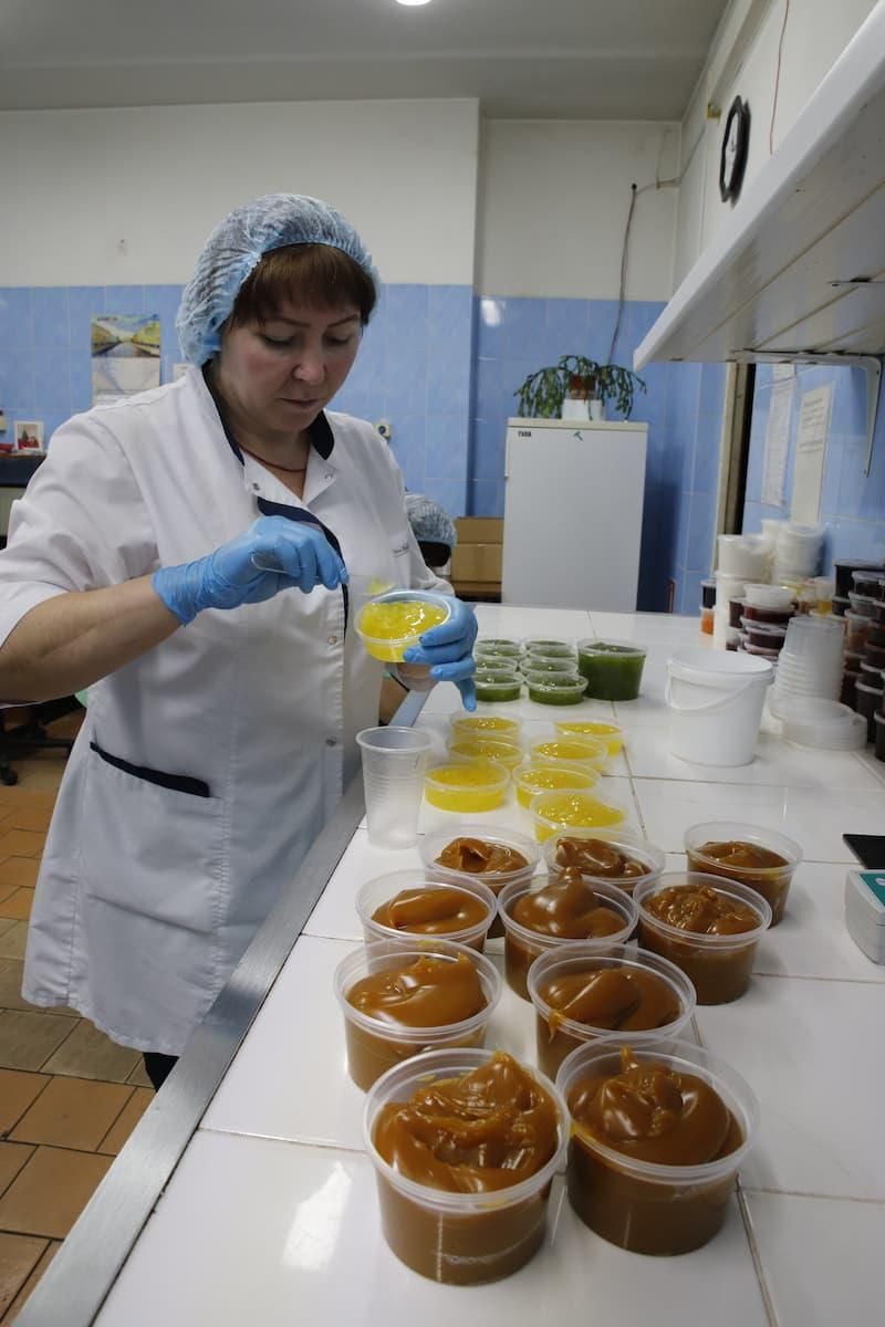Созданные образцы отправляют заказчику. Те испытывают их в выпечке в условиях своего производства. Например, одним нужно, чтобы начинка была термостатичной, то есть выдерживала высокие температуры, не текла из теста и не засыхала на противне. Другим – наоборот, требуются не термостатичные. Обычно на фабриках работает аттестационная комиссия, которая определяет подходит ли одоевская начинка по внешним, вкусовым и технологическим показателям под их изделие. Иногда по ее комментариям мастерам приходится что-то менять в рецептуре, но чаще они попадают в цель с первого раза.