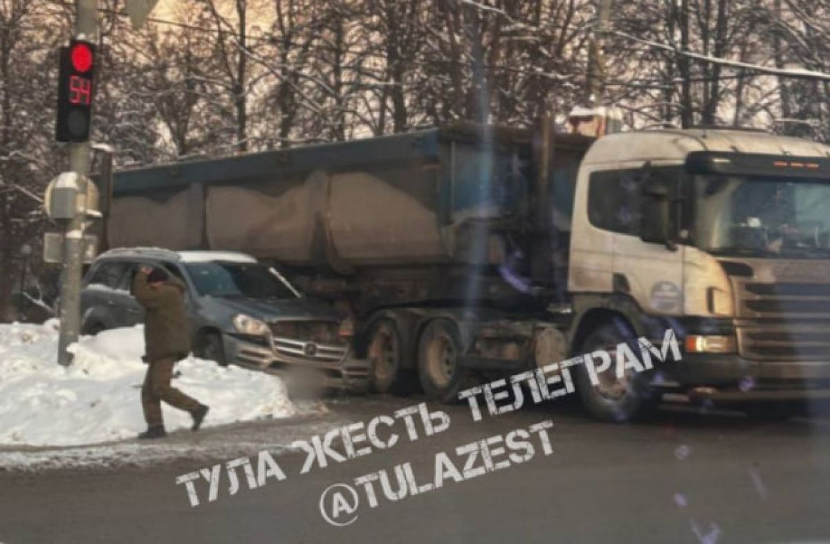 Авария произошла 23 января на перекрестке улиц Кирова и Каракозова в Туле. Кадры с места происшествия опубликовали очевидцы в социальных сетях.