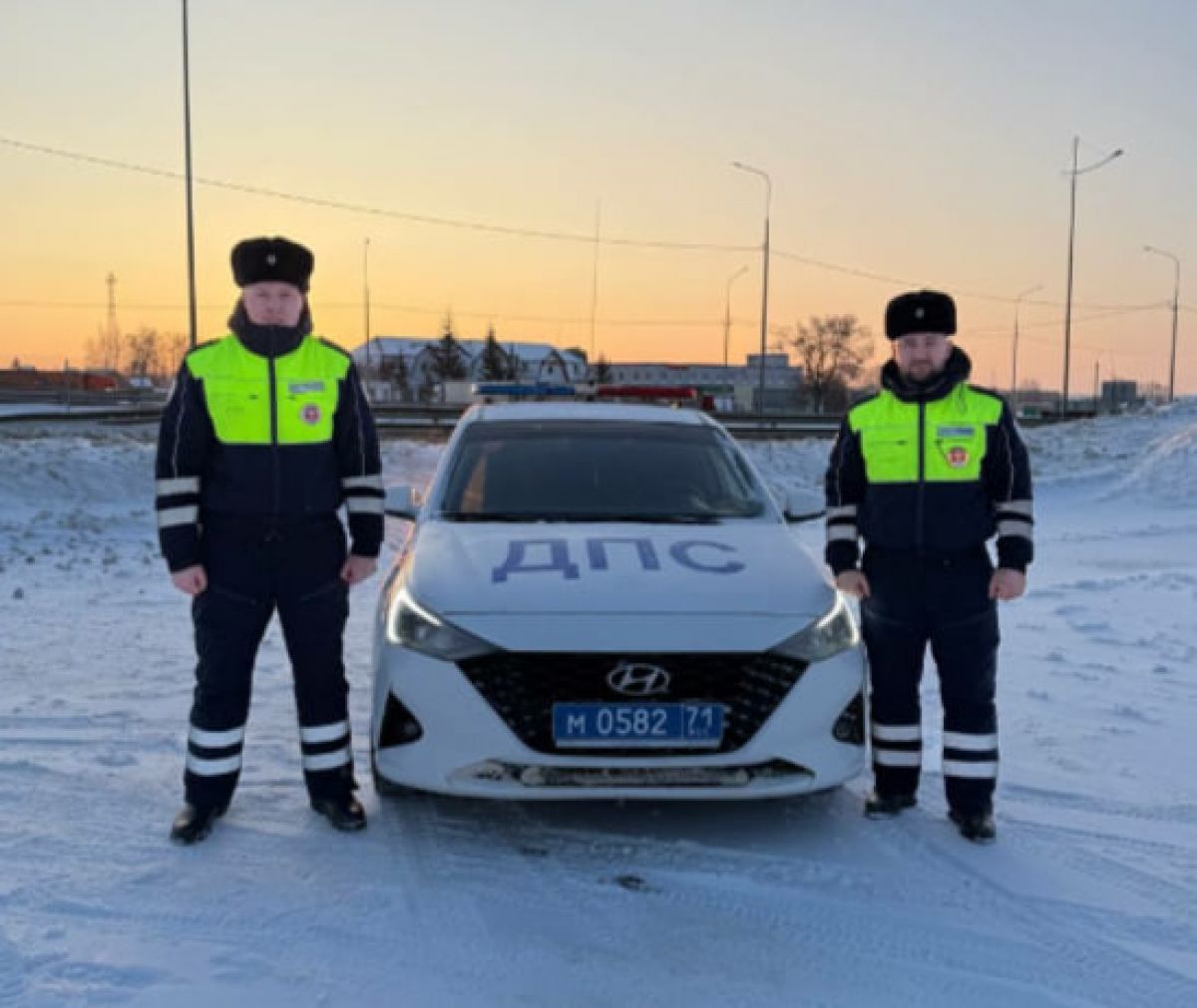 Тульские инспекторы помогли водителю сломавшегося авто морозным утром