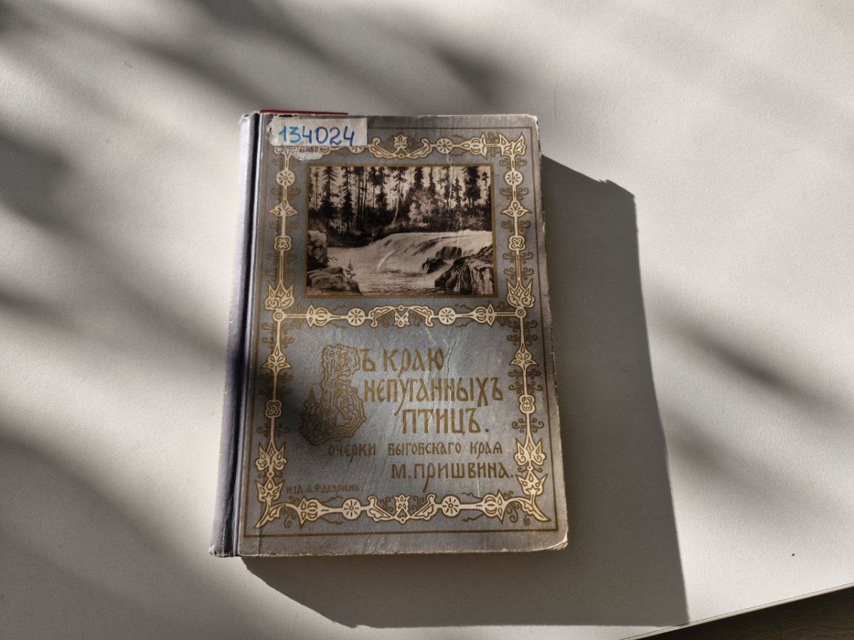 Так, книга полностью в своем первозданном и хорошо сохранилась. На обрезе мы видим узоры, что достаточно редкое явление на сегодняшний день, однако для книг того времени - это, можно сказать, обычная история. Как рассказала Елена Красноухова, сборник относится к книжной коллекции Николая Горбова, о чем говорит и экслибрис на форзаце. Кроме этого, в книге мы видим более 60 иллюстраций, сделанных с натуры – с фотографий самого Пришвина. Их писатель сделал, будучи в своем путешествии в 1906 году на русский Север.