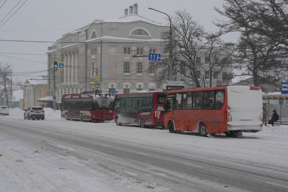Снегопад нарушил движение трамваев в Туле