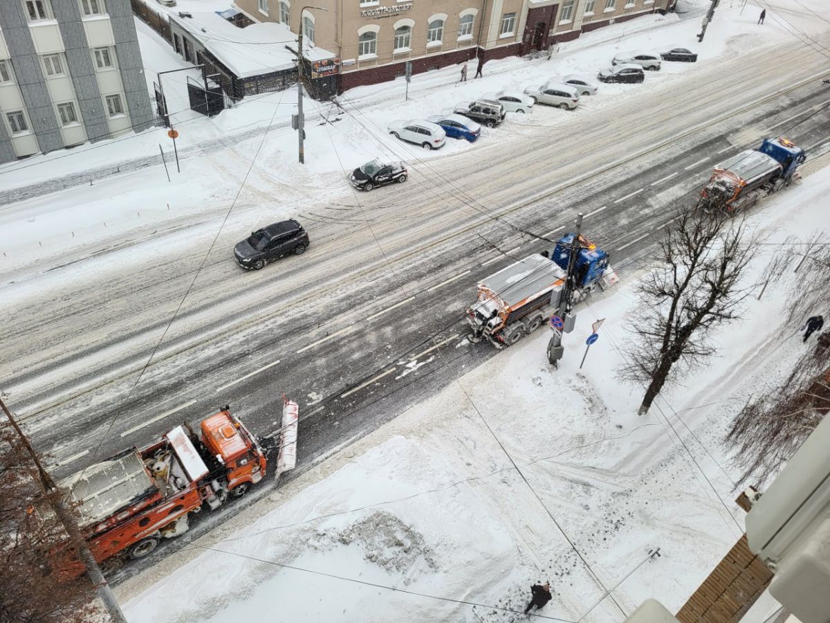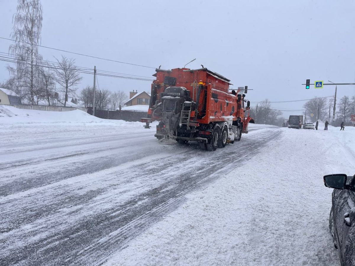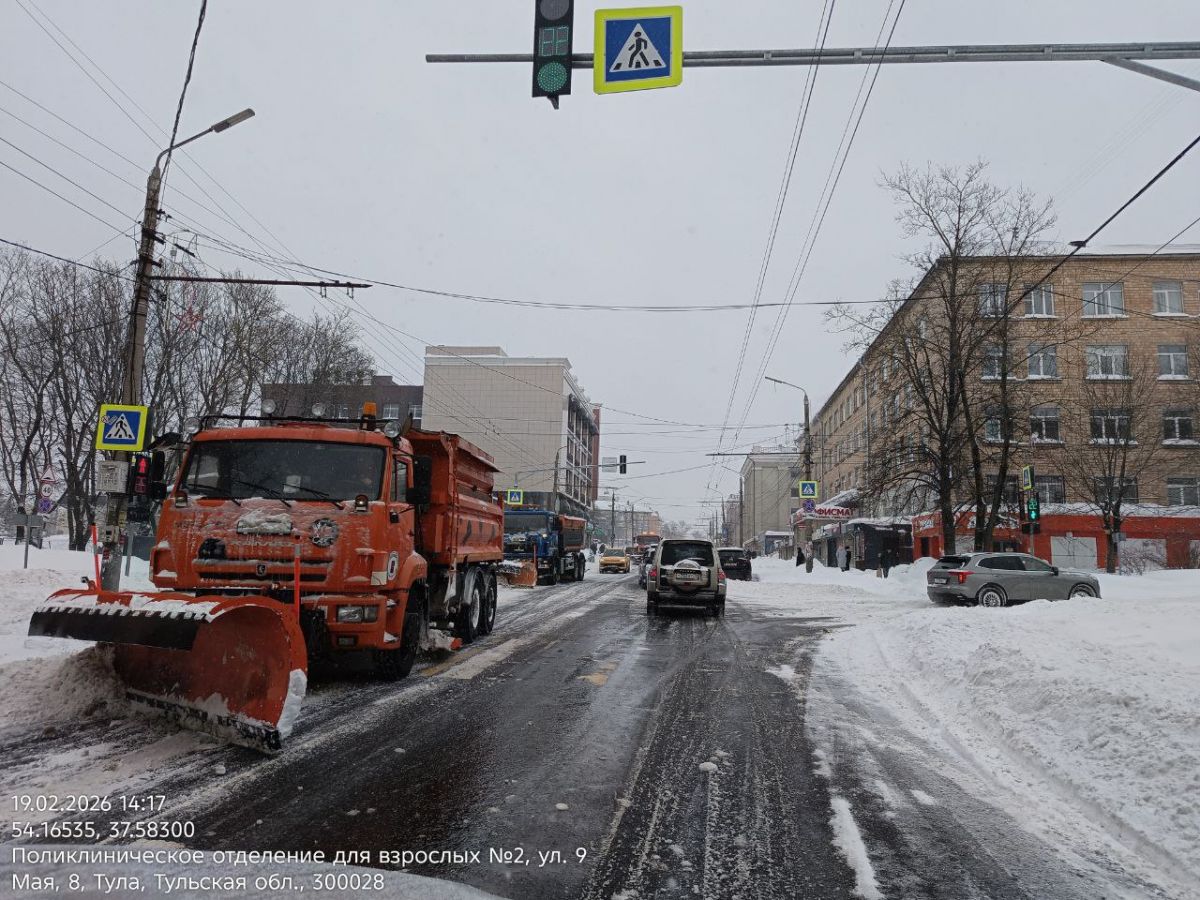 В Туле очищают дороги от твердых осадков более 350 единиц техники. Особое внимание – спускам и подъемам, на которых могут образоваться заторы, а также выездам из города и разворотным кольцам.