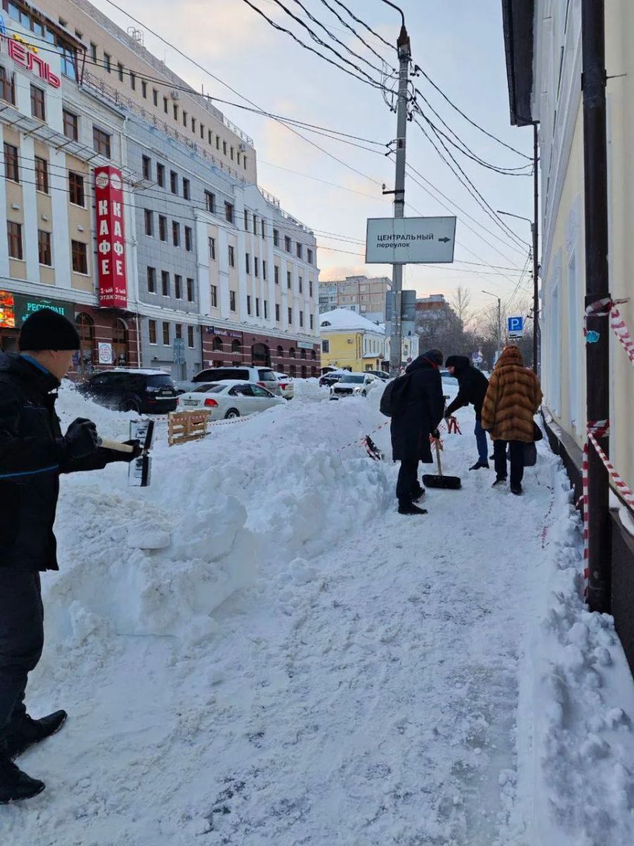 Сотрудники министерства промышленности Тульской области очистили от твердых осадков один из непроходимых участков на улице Каминского. Они освободили от осадков проход к поликлинике седьмой горбольницы.