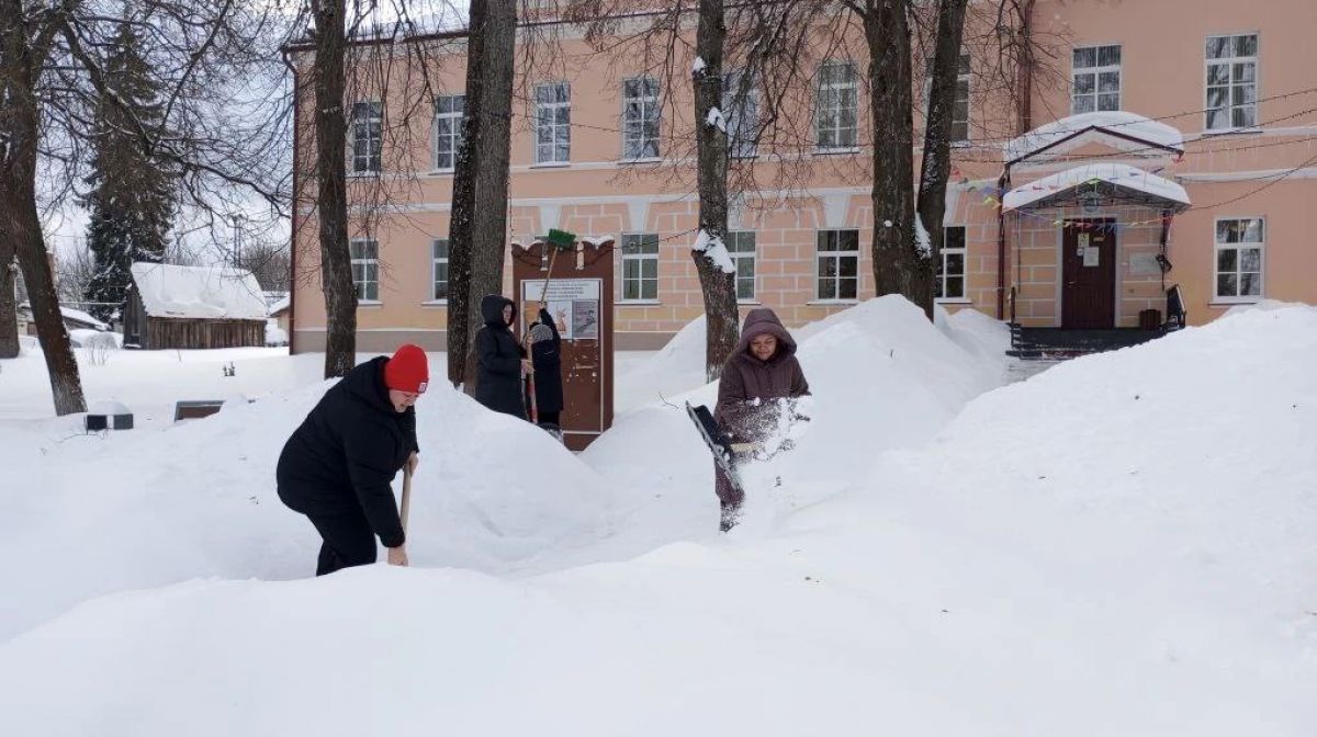 Сотрудники Тульского музейного объединения не стали ждать, пока снег растает, и вооружились лопатами.