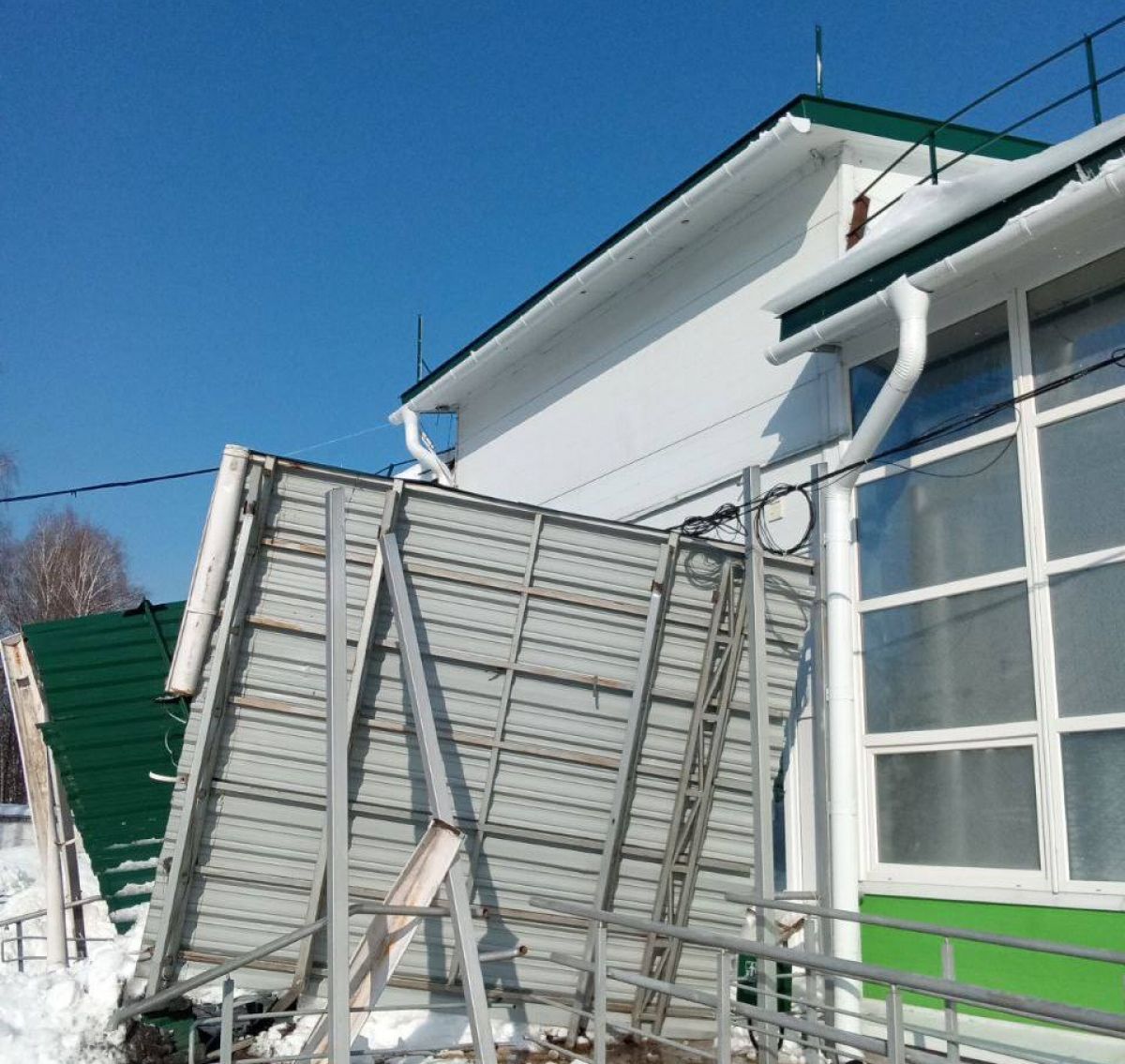 Ограждение крыши частично повреждено в доме №80 на улице Металлургов города Тулы вечером 1 марта. Причиной происшествия стал сход снега.