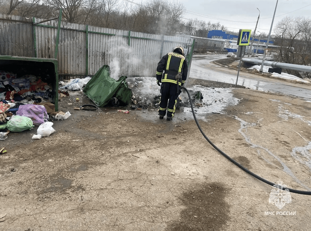 В Тульской области пожарные потушили легковушку, автобус и мусорные баки