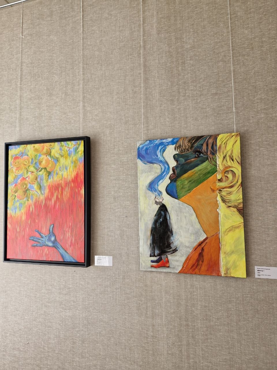 «Здесь мы видим много работ, которые выполнены в технике масляной живописи, они очень яркие, необычные по форме, по задумке и идее».