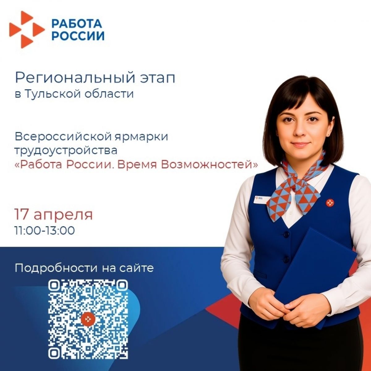 17 апреля в Тульской области пройдет первый, региональный, этап Всероссийской ярмарки трудоустройства «Работа России. Время возможностей».