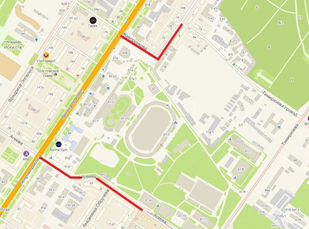 С полуночи до 22 часов на участках от улицы Мориса Тореза до проспекта Ленина по улице Жаворонкова, от улицы Жаворонкова до проезда Тимирязева и от улицы Николая Руднева до проспекта Ленина по улице Агеева запретят остановку и стоянку всех видов транспорта. С 8 до 22 часов также будет запрещен проезд по данным участкам.