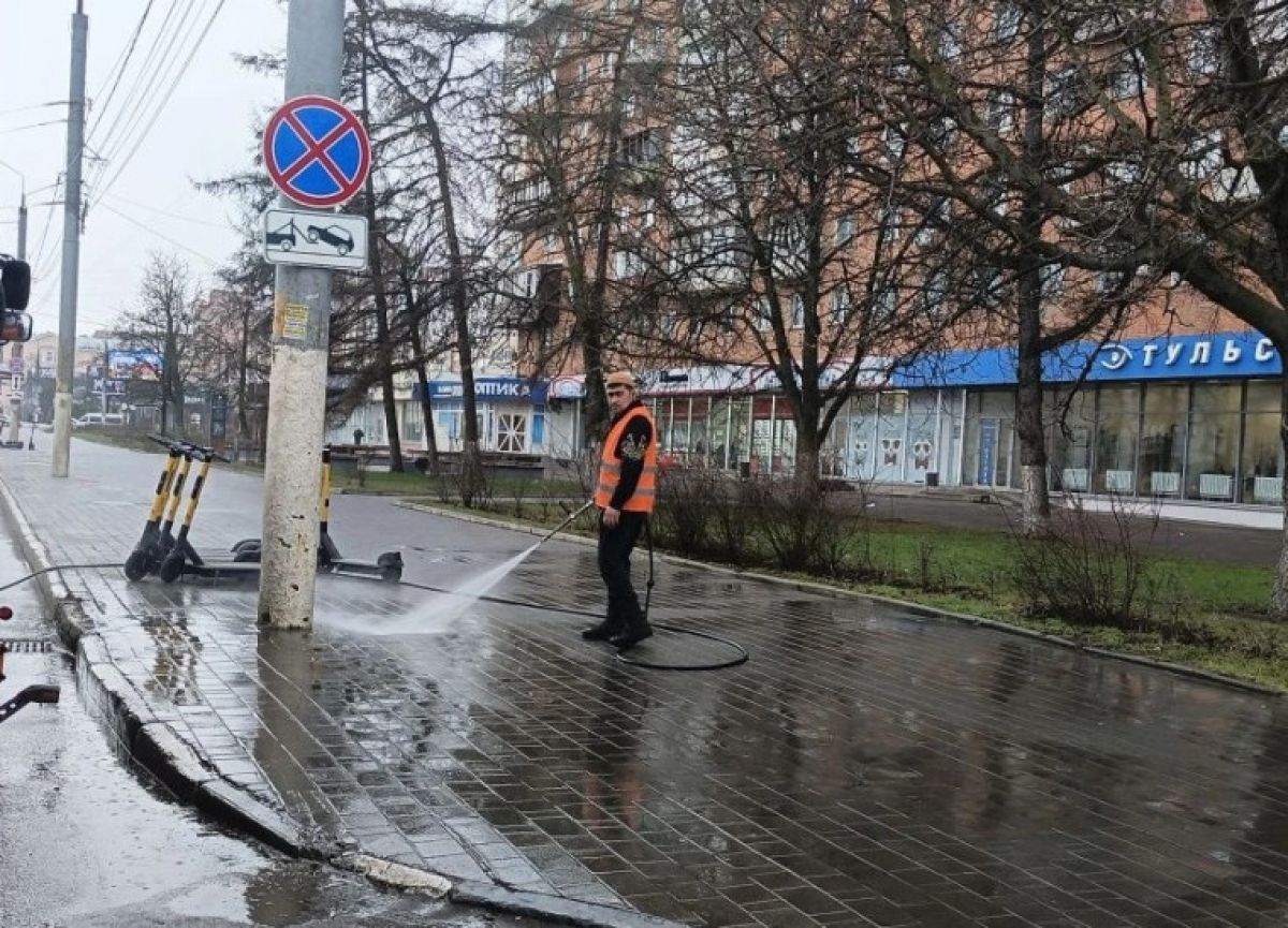 Коммунальные службы Тулы работают в круглосуточном режиме. 6 апреля в городе продолжают убирать смет, подметать и мыть улицы и тротуары.