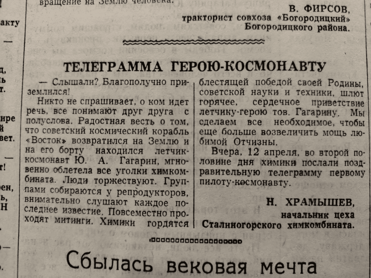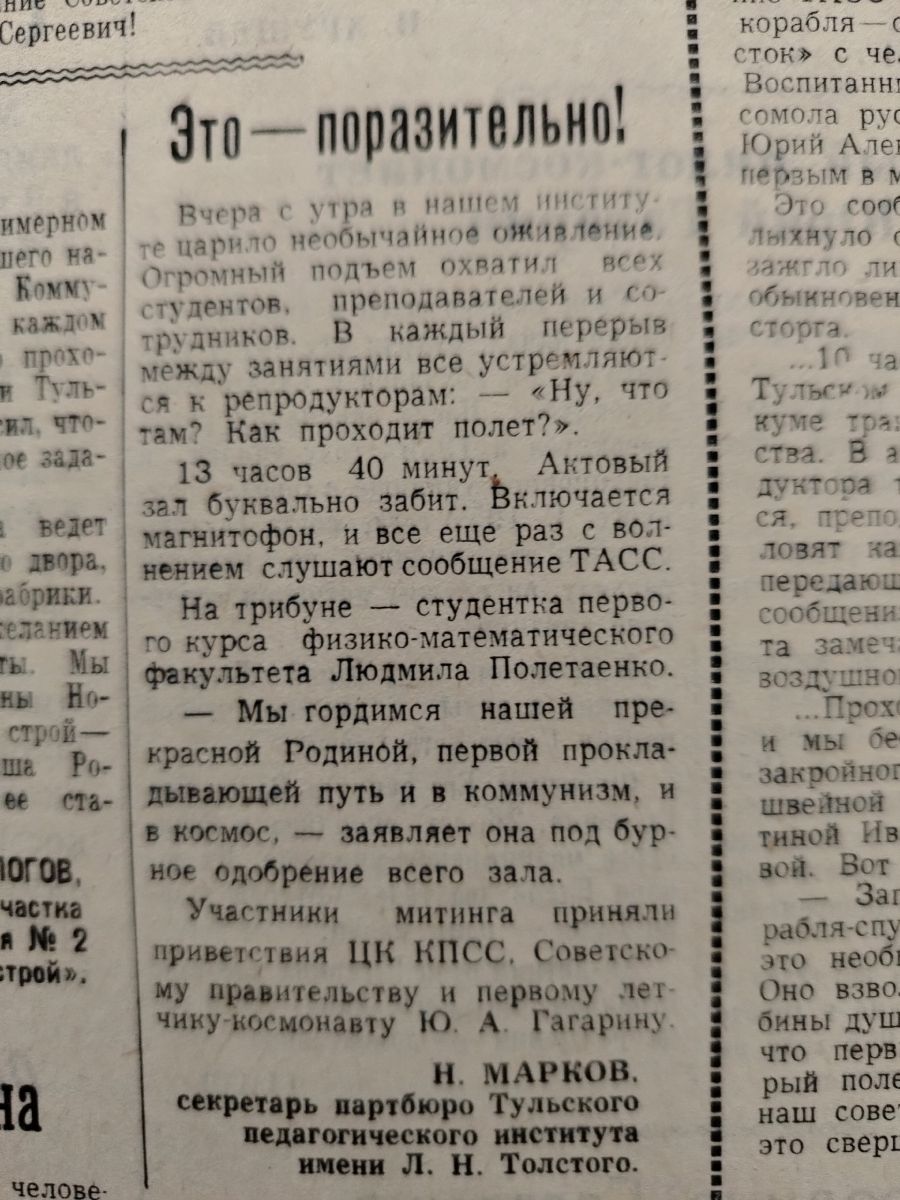 Восторг и ликование: как туляки встретили первый полет человека в космос