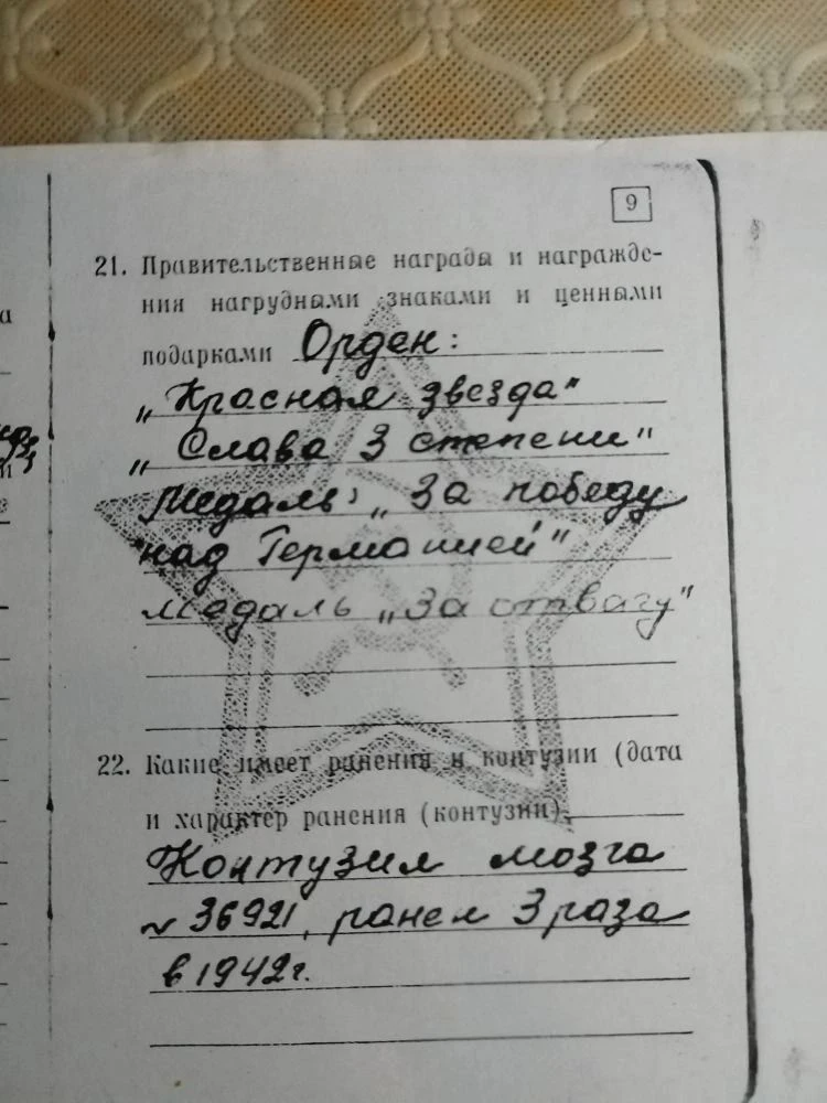 Годы жизни 1923-1984. Годы службы - 1942-1946. Служил в стрелковом полку – разведчик. Награды: орден Красной звезды, орден Славы III степени, медали «За Победу над Германией» и «За отвагу».