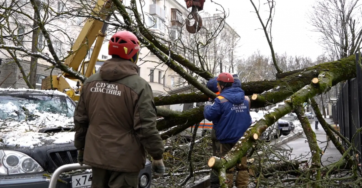 Из-за сильного ветра на территории Тулы повалены 12 деревьев. Устранением последствий непогоды заняты две бригады спасателей.